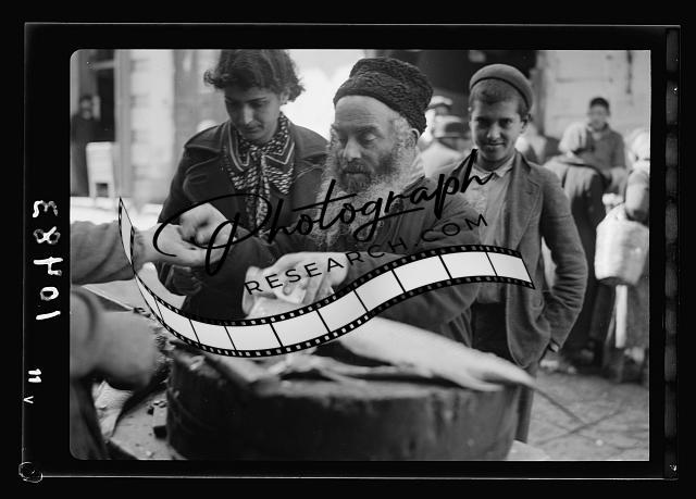 Orthodox Jew buying fish,Middle East,American Colony Jerusalem Photo Dept,1