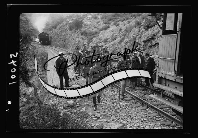 G.O.C. visits overturned locomotive on the Jerusalem Lydda Railroad Line,1