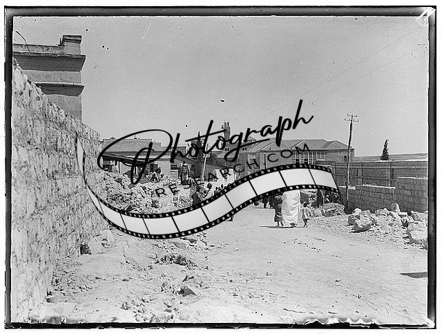 People in street,Italian Hospital in background,Jerusalem,Middle East,1920 1