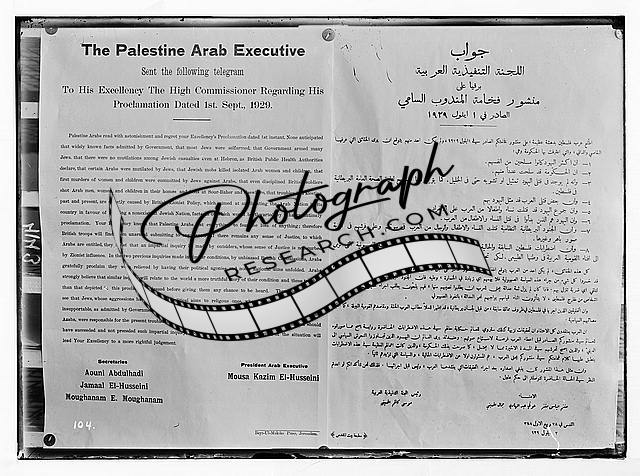 The 1929 riots,Telegram sent to His Excellency,High Commissioner,Middle East