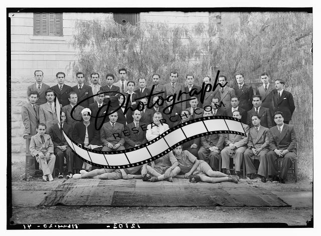 Title: Arab staff at P.B.S. [i.e., Palestine Broadcasting Service] Small group of 9