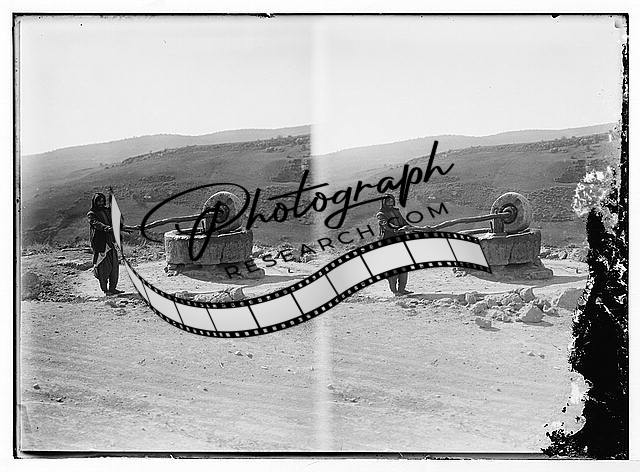 Bedouin man at a millstone,Nomadic Arabs,Middle East,Matson Collection