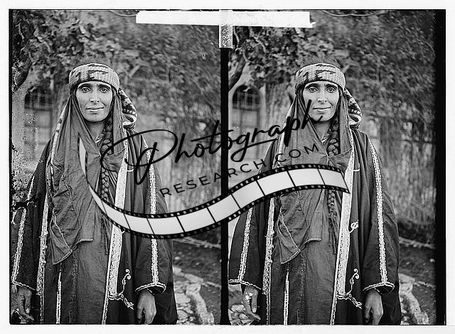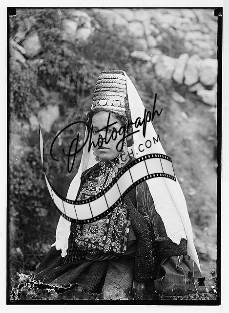 Married woman from Bethlehem wearing hat,veil,Middle East,Matson Collection