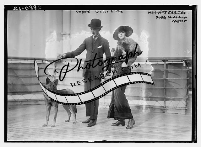 Vernon Castle,wife with pets,Irene Castle,dog,fox,taken 1910-1915