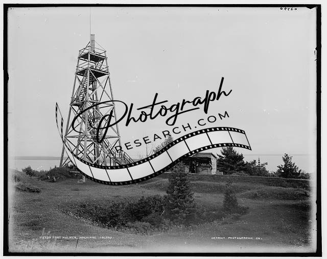 Fort Holmes,fortifications,buildings,trees,Mackinac Island,Michigan,MI,1880
