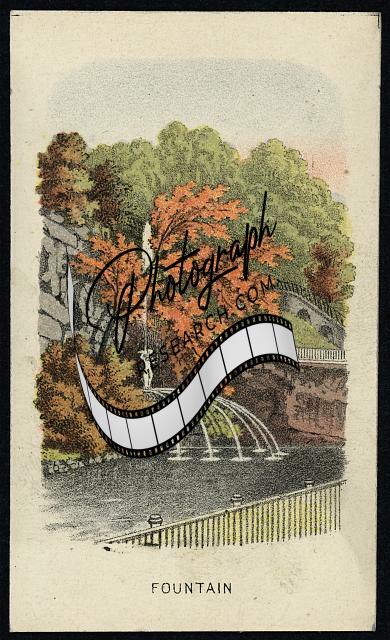 Fountain,trees,souvenir booklet,Fairmount Park,J Sinclair,Philadelphia,PA,c1870