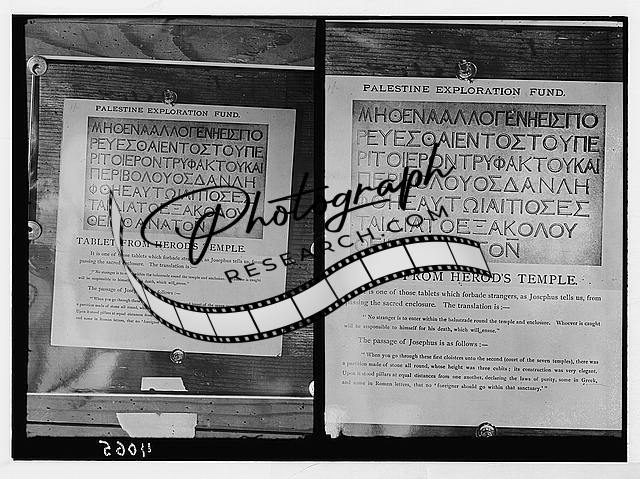 Photo of Copy of Inscription Herod's Temple,Middle East,American Colony Photo