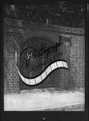 Arched wrought iron gate,free standing brick wall,Arnold Genthe,Photographer
