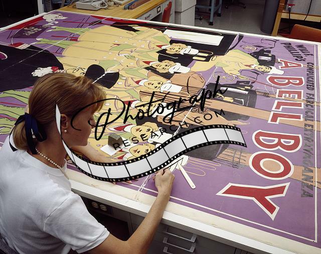 Conservationist Works on Historic Poster,Library of Congress,Washington,DC