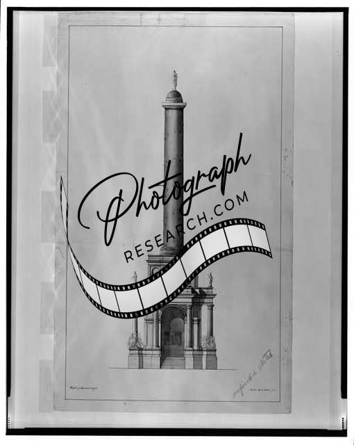 Summary: Presentation drawing showing monument with sculpture of George Washington as perspective projection; rendering.