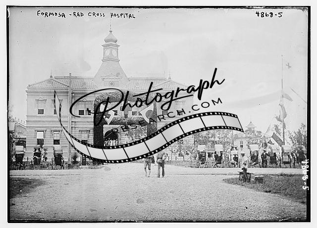 Formosa,flags,Red Cross Hospital,buildings,aid,organizations,streets,Taiwan