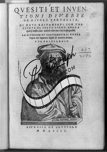 Title page,Quesit inventioni diverse,author,mathematician Nicolo Tartaglia,1554