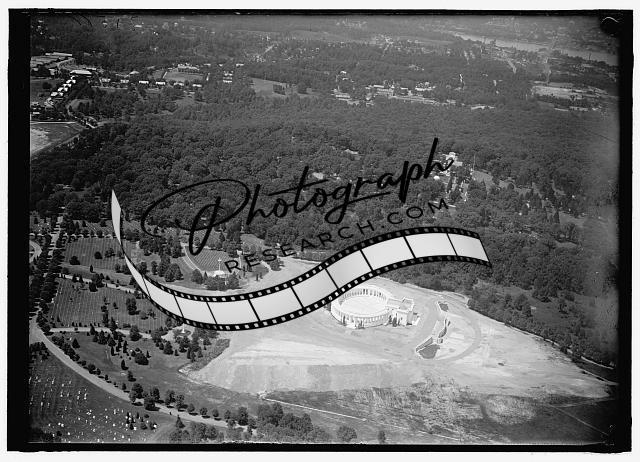 Title: ARLINGTON NATIONAL CEMETERY. VIEWS OF ARLINGTON FROM THE AIR, CENTERING THE MEMORIAL AMPHITHEATRE