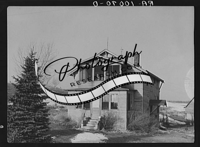 Title: Detail of barn on Lyle Askeland farm of six hundred forty acres, until recently part of an absentee estate near Armstrong, Iowa. Painting and repairing of buildings has been neglected for twenty years. This farm has now been taken over by loan company and is worked on a crop share (fifty-fifty basis on some stock)