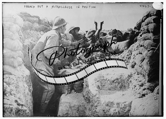 French put a mitrailleuse in position,trench,soldiers,Bain News Service