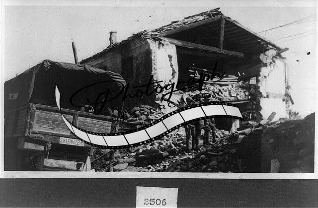 Men in uniforms at ruins,Italian Front,World War I,WWI,c1918,War Damage
