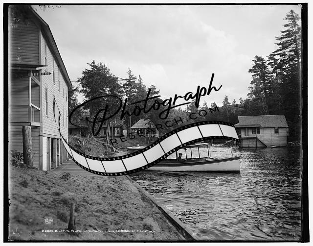 Inlet,Fourth lake,boats,canoe,Fulton Chain,Adirondack Mountains,New York,NY,1900