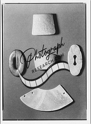 Title devised. Photograph by Arnold Genthe of objects in his art collection.