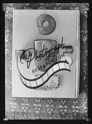Title devised. Photograph by Arnold Genthe of objects in his art collection.
