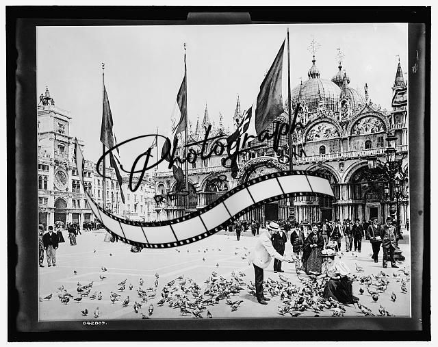 Feeding pigeons,Piazza San Marco,cathedrals,religious building,Venice,Italy,1895
