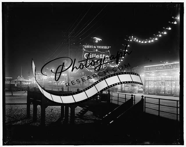 Boardwalk,night,electric signs,Gillette Safety Razors,Atlantic City,NJ,1900