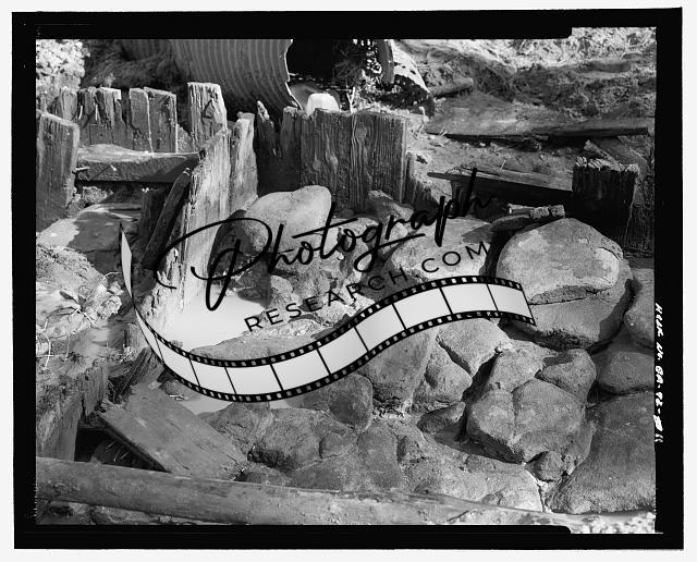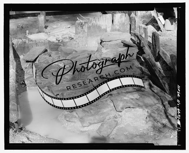 Title: View of downstream debris field at the Merry Generator House, showing possible concrete generator seats, looking south - Arthur Holmes Merry Generator House, Signal Lake North of Range Road, Fort Gordon, Richmond County, GA