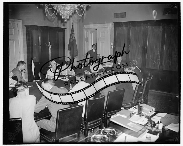 Popular press conference,Key Pittman,newsmen,tables,reporters,Washington DC,1938