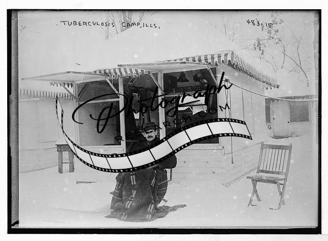 Patient sitting outside cabin,Tuberculosis camp,Illinois,IL,man sitting
