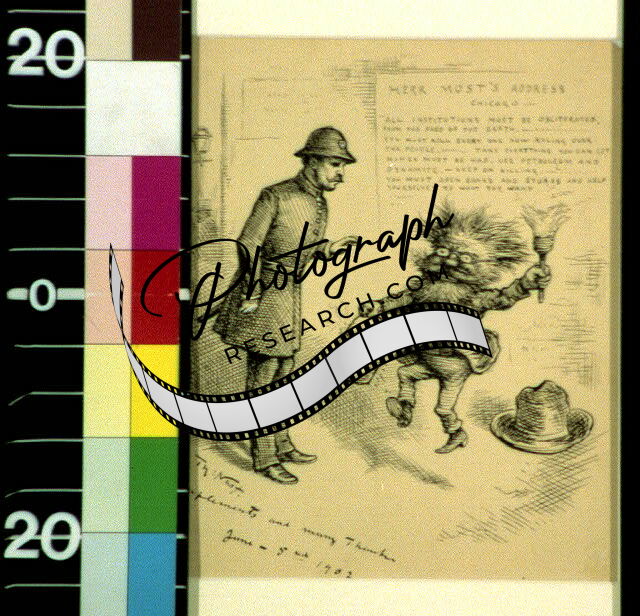 Herr Most's address,Chicago,Thomas Nast,June 5,1902,Broncos,Police,Caricature