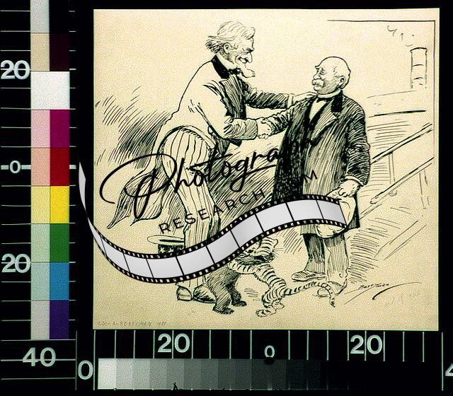 Uncle Sam shaking hands with Clemenceau,1922,Georges Clemeceau,Cartoon