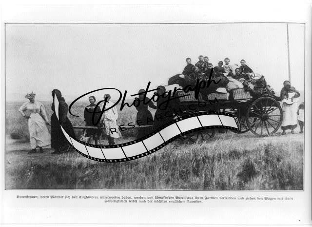 Boer Women & Children Refugees on Wagon,Women pulling wagon,South Africa,1901