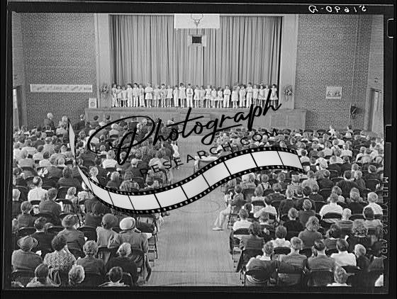 Title: A scene from a play, 'History of Ashwood Health Association,' written and presented by tenth grade at May Day-Health Day program. Ashwood Plantations, stage of auditorium, South Carolina