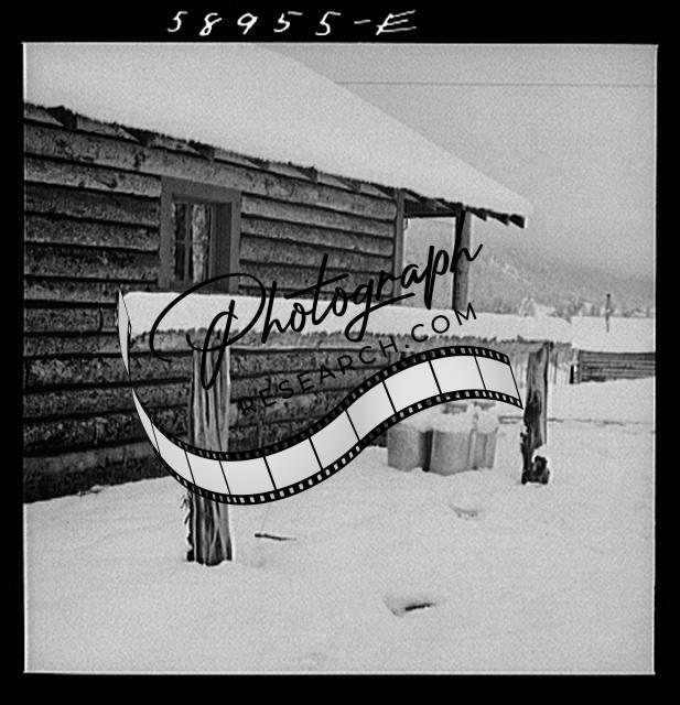 Title: Ranch house after early fall blizzard in mountains near Aspen, Colorado