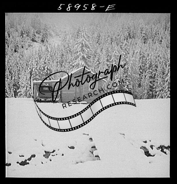 Title: Ranch house after early fall blizzard in mountains near Aspen, Colorado