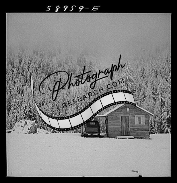 Title: Ranch house after early fall blizzard in mountains near Aspen, Colorado