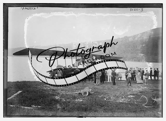 Assembling AMERICA plane,airplane,automobile,crowd gathered,aviation,1910-1915
