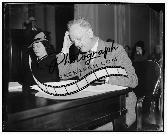 Title: Protests tactics of Association of American Railroad. Washington, D.C., March 16. Testifying before the Senate Rail Finance Inquiry today, Fred W. Sargent, President of the Northwestern Railroad, protested against the 'unfair and partial' tactics by the American Association of Railroads in 'Squeezing' the trunk railroad lines of the middle west. He also proposed to the committee an 8-point program for rehabilitation of railroads, 3/16/38