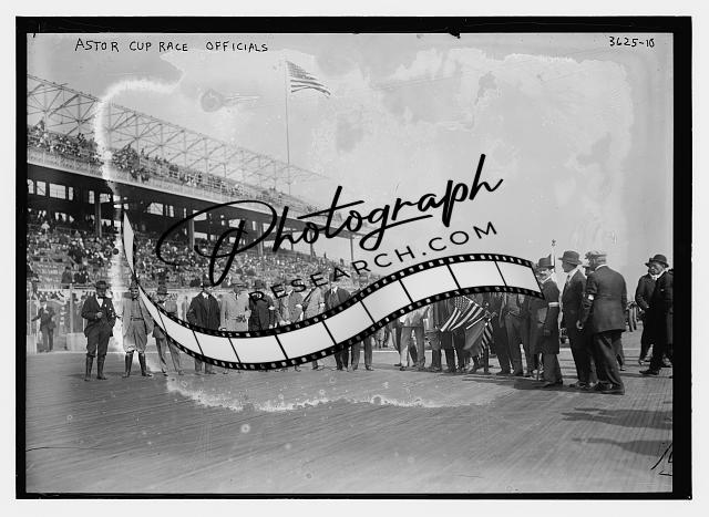 Astor Cup race officials,American flags,spectators,automobile racing,Bain News