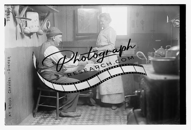 At Broad Channel - dinner,men,woman,table,kitchen,tea pot,window,Bain News
