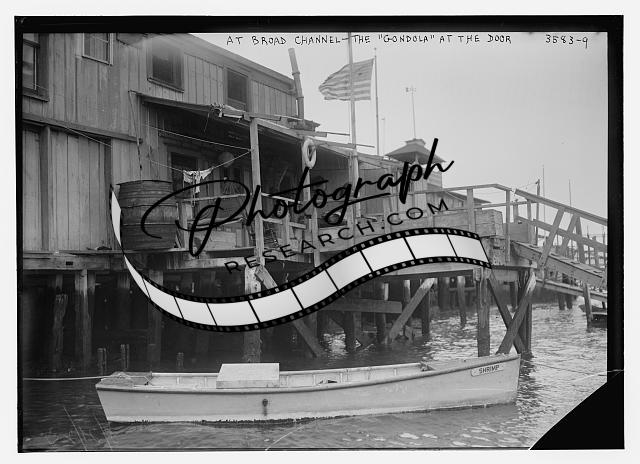 At Broad Channel -- the 'Gondola' at the door,American flag,boat,wood barrell