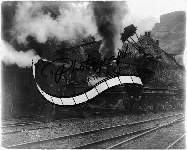Dinkey engine and steam shovel,c1914,railroad,steam