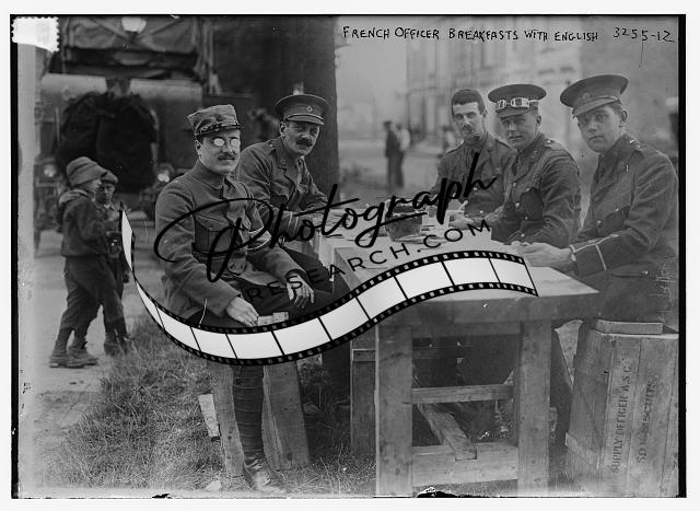 French Officer breakfasts with English,children,men,table,eating,food,Bain News