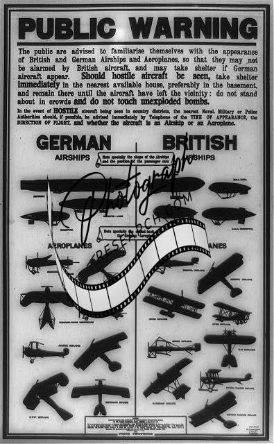 [[Public warning. German airships. British airships. German aeroplanes. British a