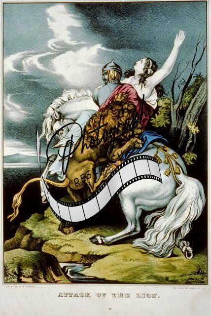 Attack of the Lion,1835-1856,Currier Photo,Horseback,Woman,Man