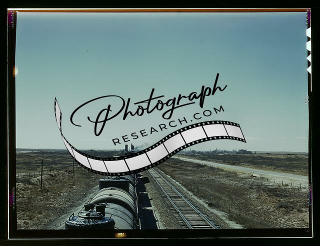 West bound Santa Fe Railroad,freight train stopping,water,Tolar,New Mexico,1943