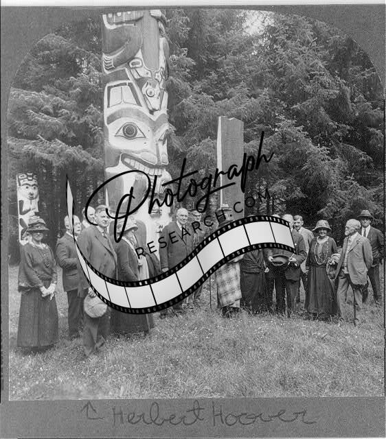 President Harding,Mrs. Harding,Wife,Great Alaskan Totem Pole,Sitka,c1923,Alaska