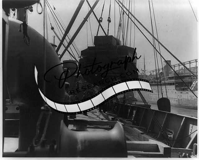 Loading a tank aboard one of Victory ships,c1942,WWII transport,World War Two