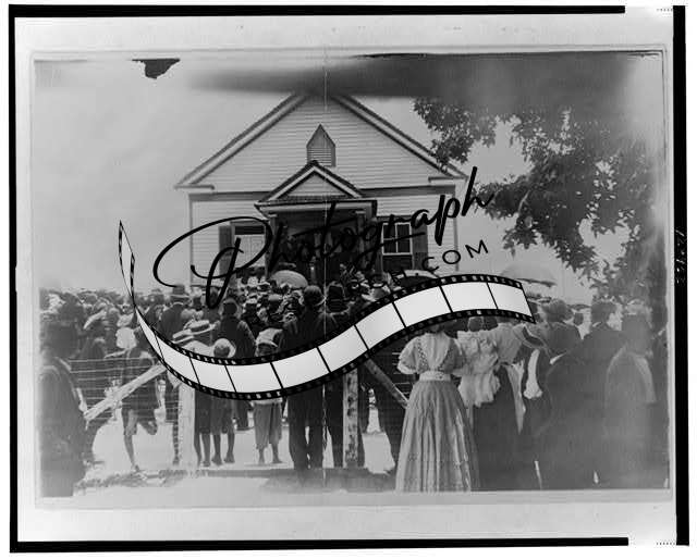 Booker T. Washington addressing crowd,porch,African American Meeting,Brownsville