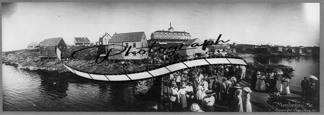Monhegan,waterfronts,leisure,buildings,shore,pier,people,crowds,Maine,ME,c1911