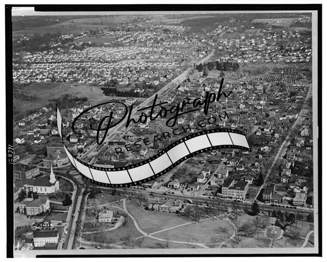Aerial View,South Manchester,Connecticut,CT,c1946,Cityscape,Houses,Church